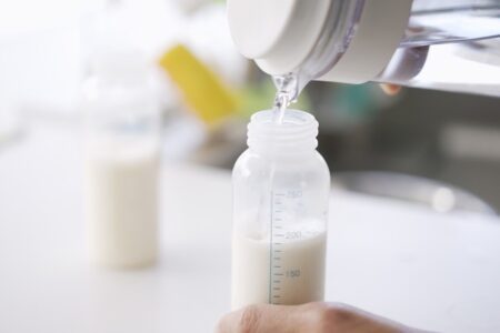 必要な水の量は、ミルク中心かどうかで大きく変わります。粉ミルクの場合、1回の調乳で使用するお湯はおおよそ100〜200ml程度で、1日5〜7回行うと約0.5〜1L前後の水を消費します。さらに湯冷ましや哺乳瓶の洗浄用も必要になるため、実際の消費量はそれ以上です。