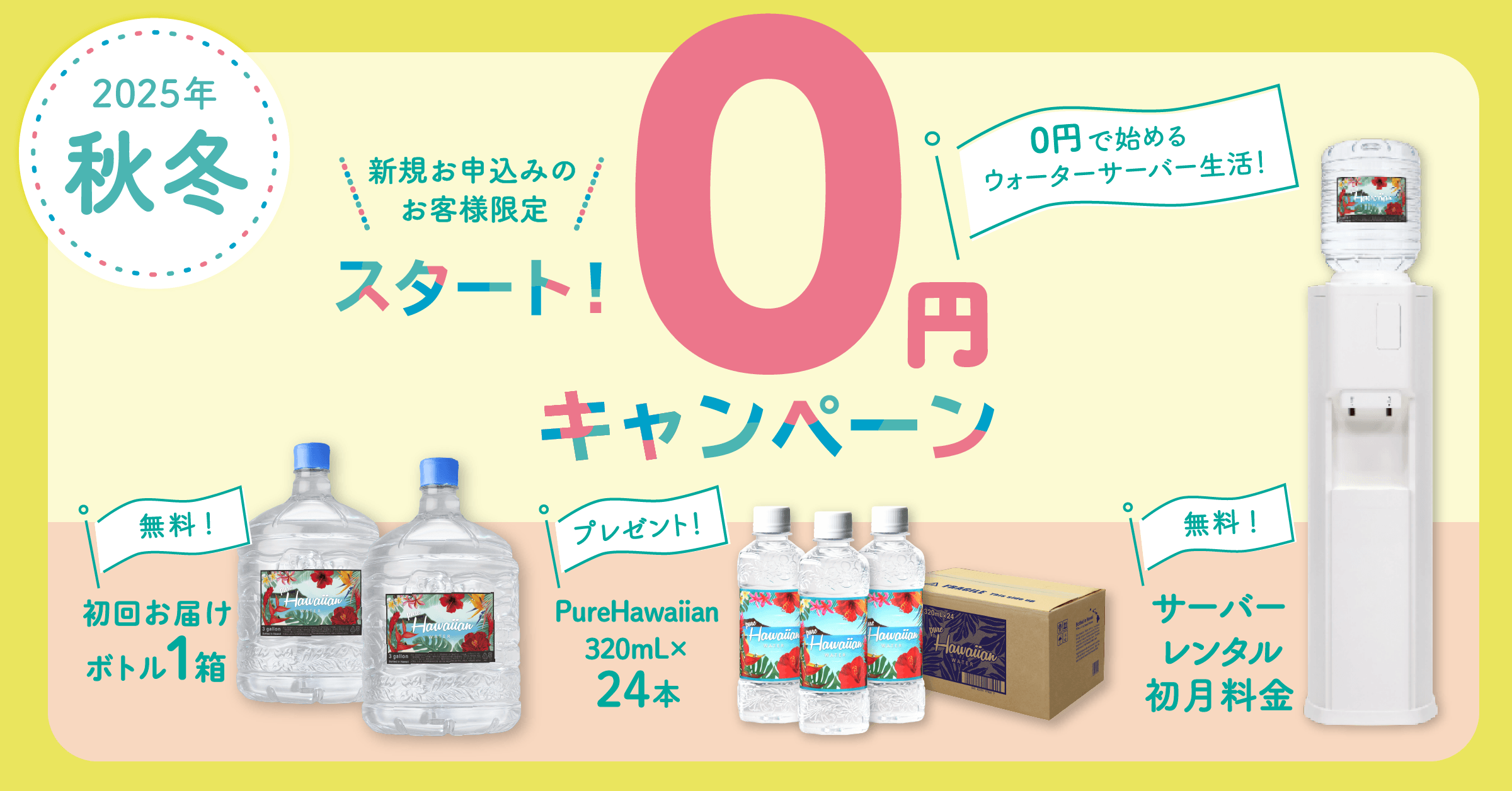 当サイトよりピュアハワイアンをお申込みで初回お届け分ボトルを無料でプレゼントするキャンペーンを実施いたします。